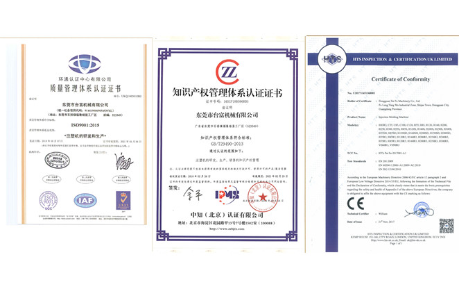 公司成立至今,榮獲了多項證書,其中包括《中國注塑機十大品牌》、《廣東省信得過單位》等一些榮譽,提為國家高新技術企業,及多項專利。